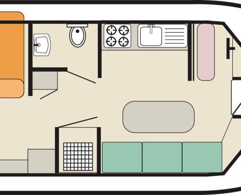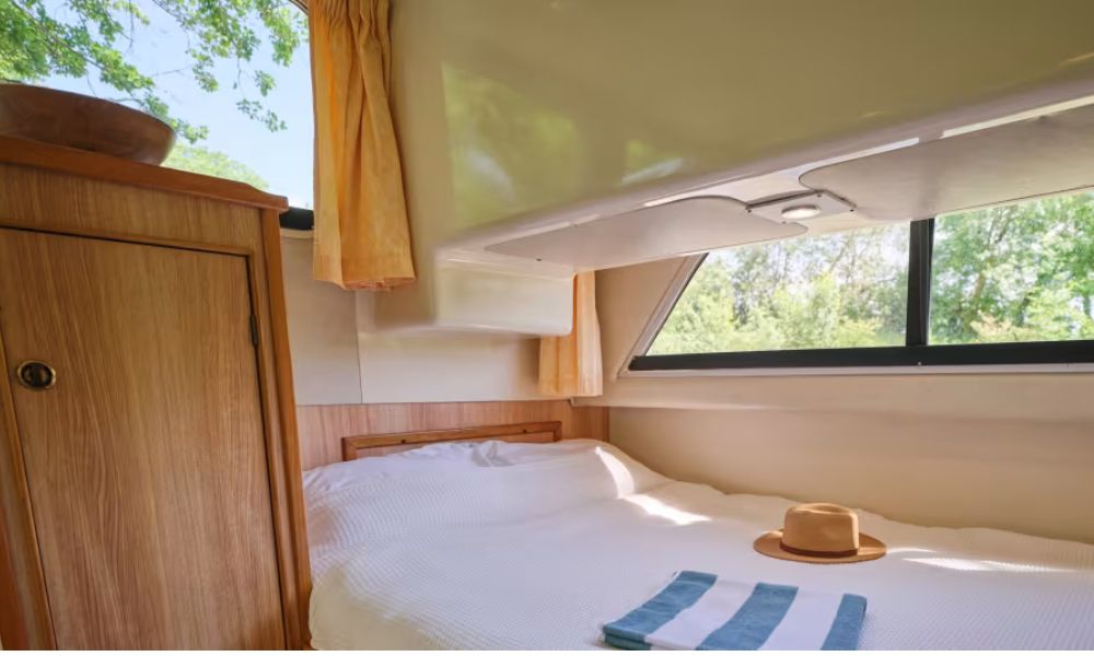 Das Hausboot Cirrus mieten Sie mit 2 – 4 Personen, es hat 1 Schlafkabine, bei Cirrus A mit zwei Einzelbetten und bei Cirrus B mit einem Doppelbett. Die Cirrus B verfügt weiterhin über ein Einzelbett im Wohnbereich. Das Sofa im Wohnbreich kann jeweils zu einem weiteren Bett umgebaut werden, so dass insgesamt bis zu 4 Personen an Bord Platz finden. (2 Erwachsene und 2 Kinder) Cirrus A verfügt über Waschbecken/ WC und eine separate Dusche, Cirrus B 1 x DU/WC.