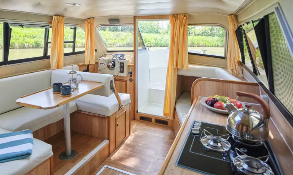 Auf dieser Seite: Maße & Ausstattung – Abfahrtshäfen – Mietpreise – FAQs – Hausbootreviere