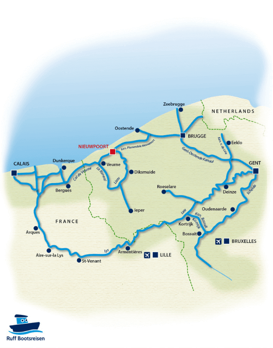 Ein Hausboot kann man in Belgien in Flandern (im Westen Belgien’s) rund um Brügge und Gent mieten.